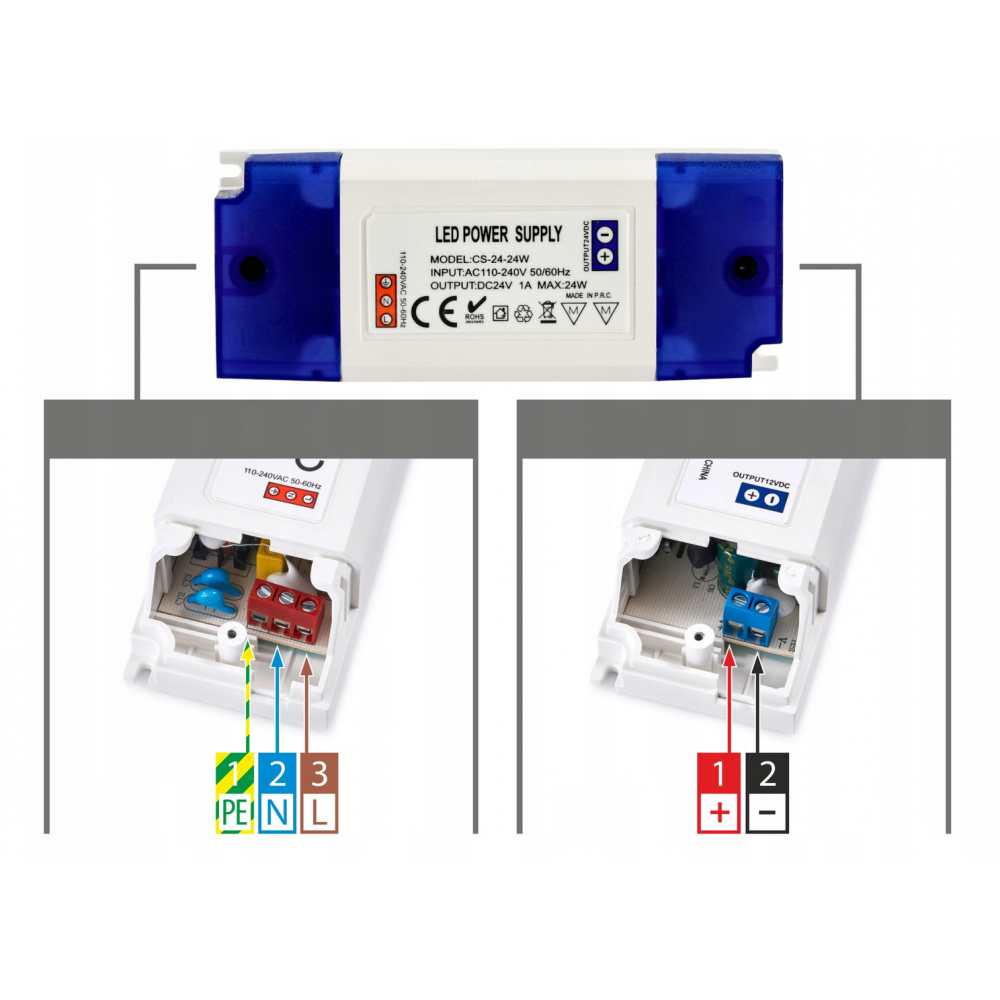 BERGE Zdroj pro LED nábytek 24V - 24W - 1A - IP20