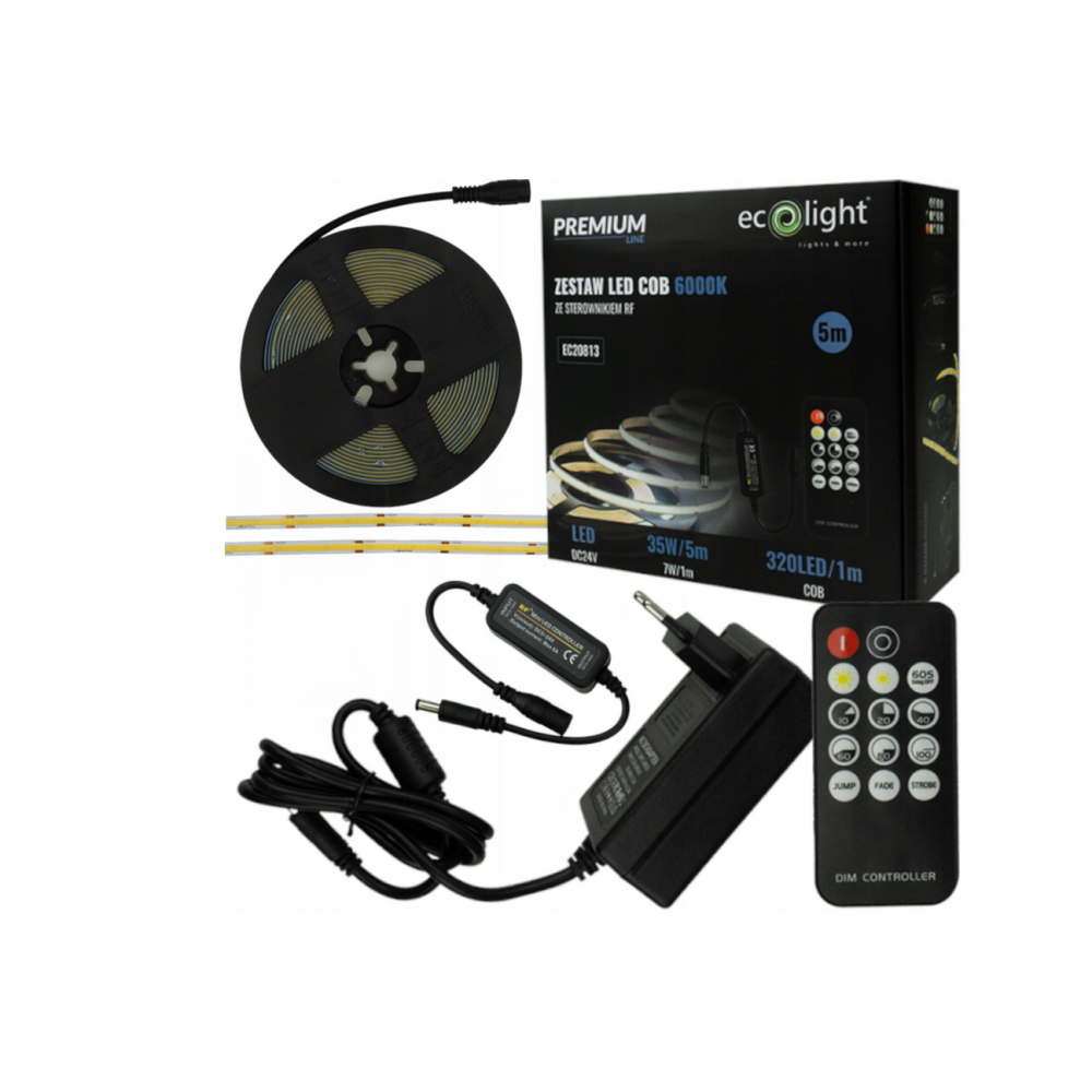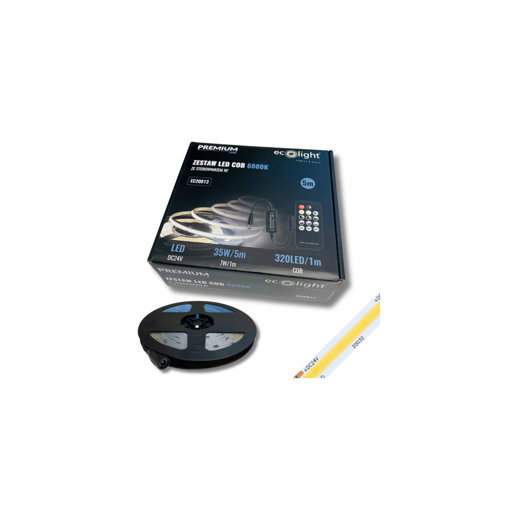 ECOLIGHT COB LED pásek 35W - 24V - 320 - 5M - 6000k - studená barva + dálkový ovladač