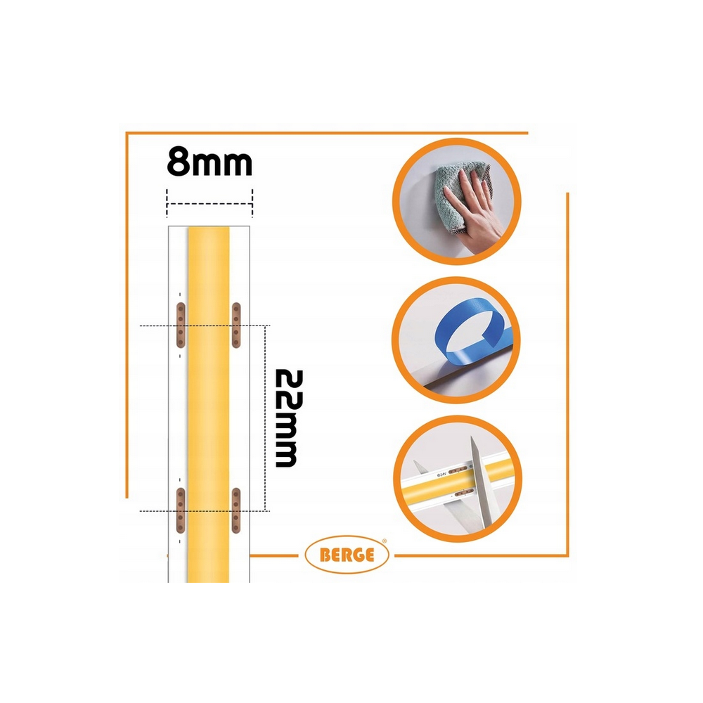 BERGE LED pásek COB Neon 12V - 480D - 9W/m - IP20 - 1m - 990lm - studená barva