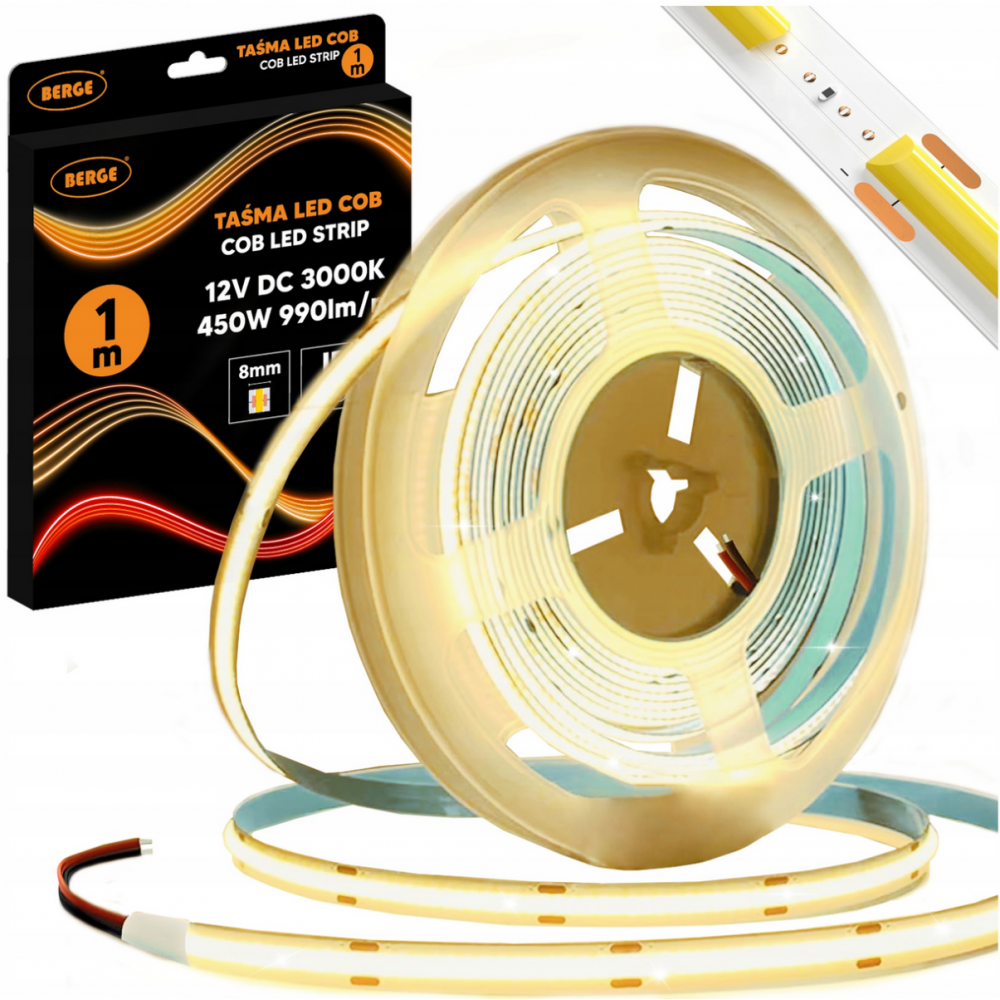 BERGE LED pásek COB Neon 12V - 480D - 9W/m - IP20 - 1m - 990lm - teplá barva