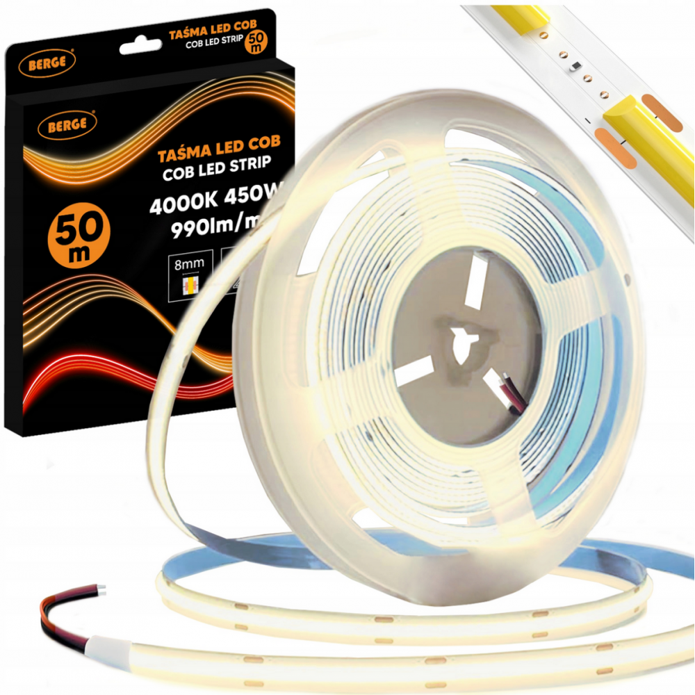 BERGE LED pásek COB Neon 12V - 480D - 9W/m - IP20 - 50m - 990lm/m - neutrální barva