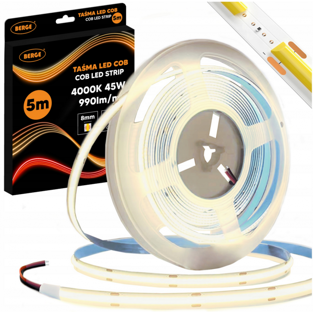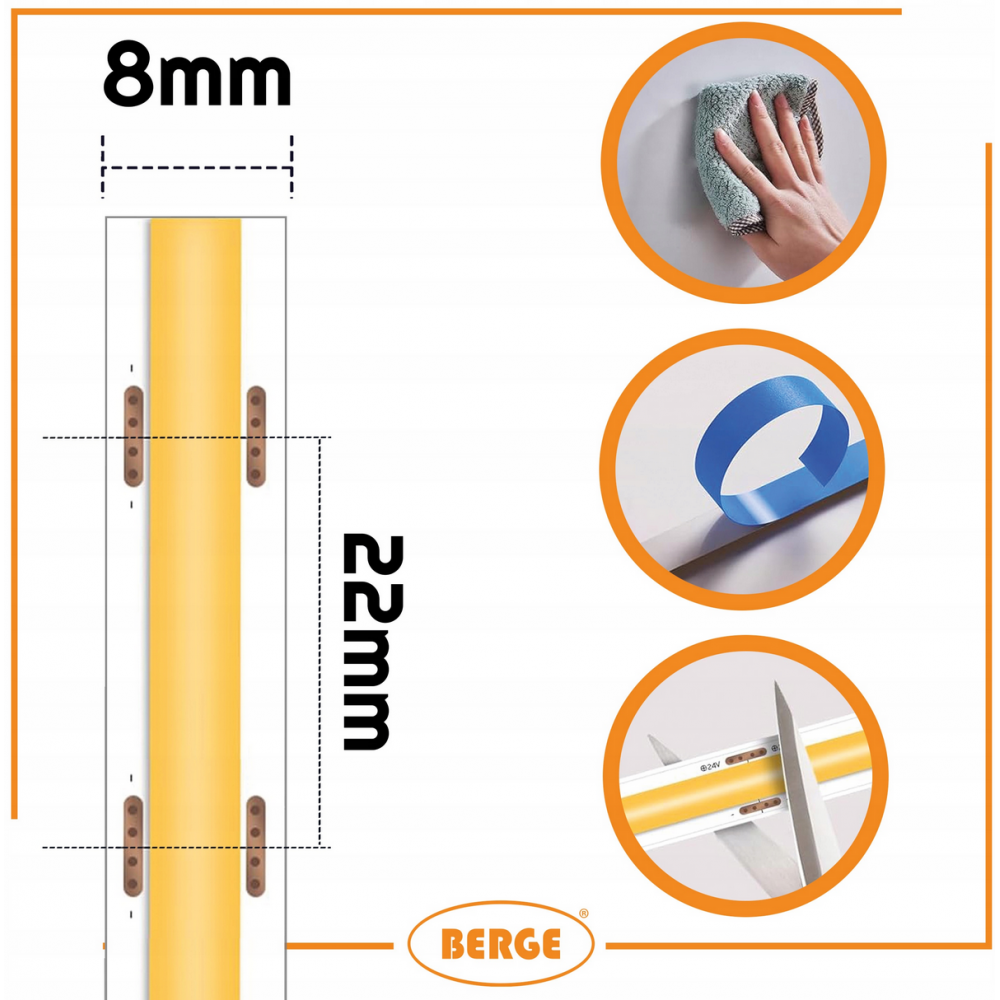 BERGE LED pásek COB Neon 12V - 480D - 9W/m - IP20 - 990lm - 5m - neutrální barva