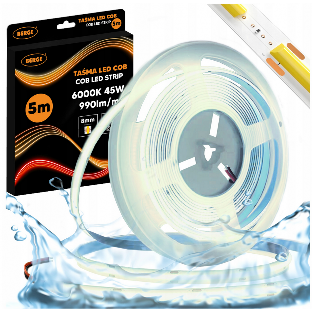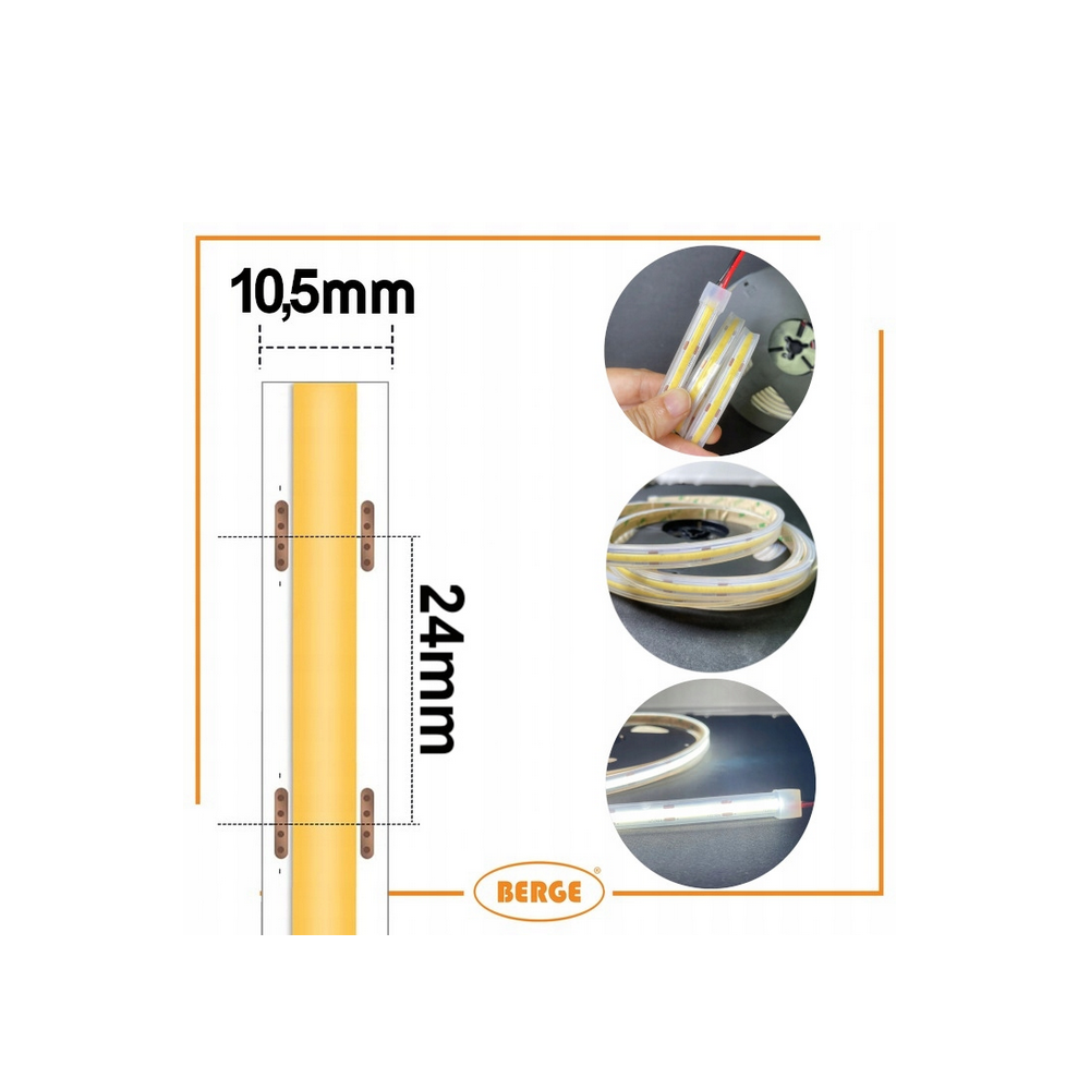 BERGE LED pásek COB Neon 12V - 480D - 9W/m - IP67 - 990lm - 5m - studená barva