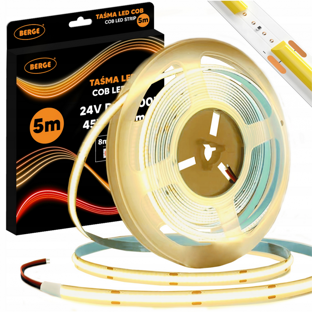 BERGE LED pásek COB Neon 24V - 480D - 9W/m - IP20 - 5m - 990lm - teplá barva