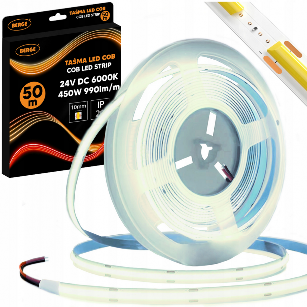 BERGE LED pásek COB Neon 24V - 480D - 9W/m - IP20 - 990lm - 50m - studená barva