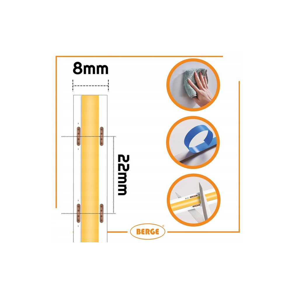 BERGE LED pásek COB Neon 24V - 480D - 9W/m - IP20 - 990lm - 5m - studená barva