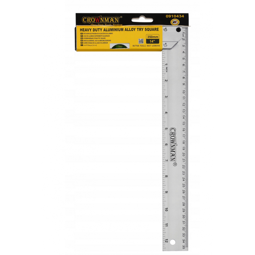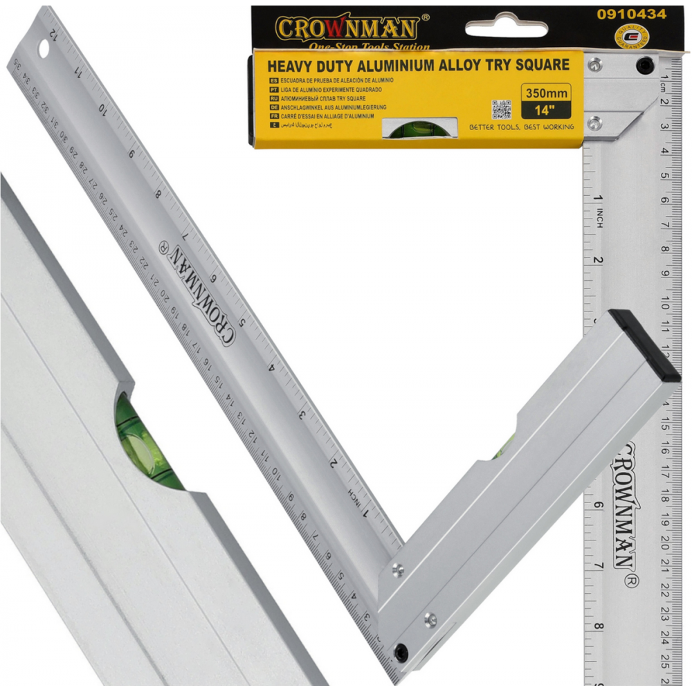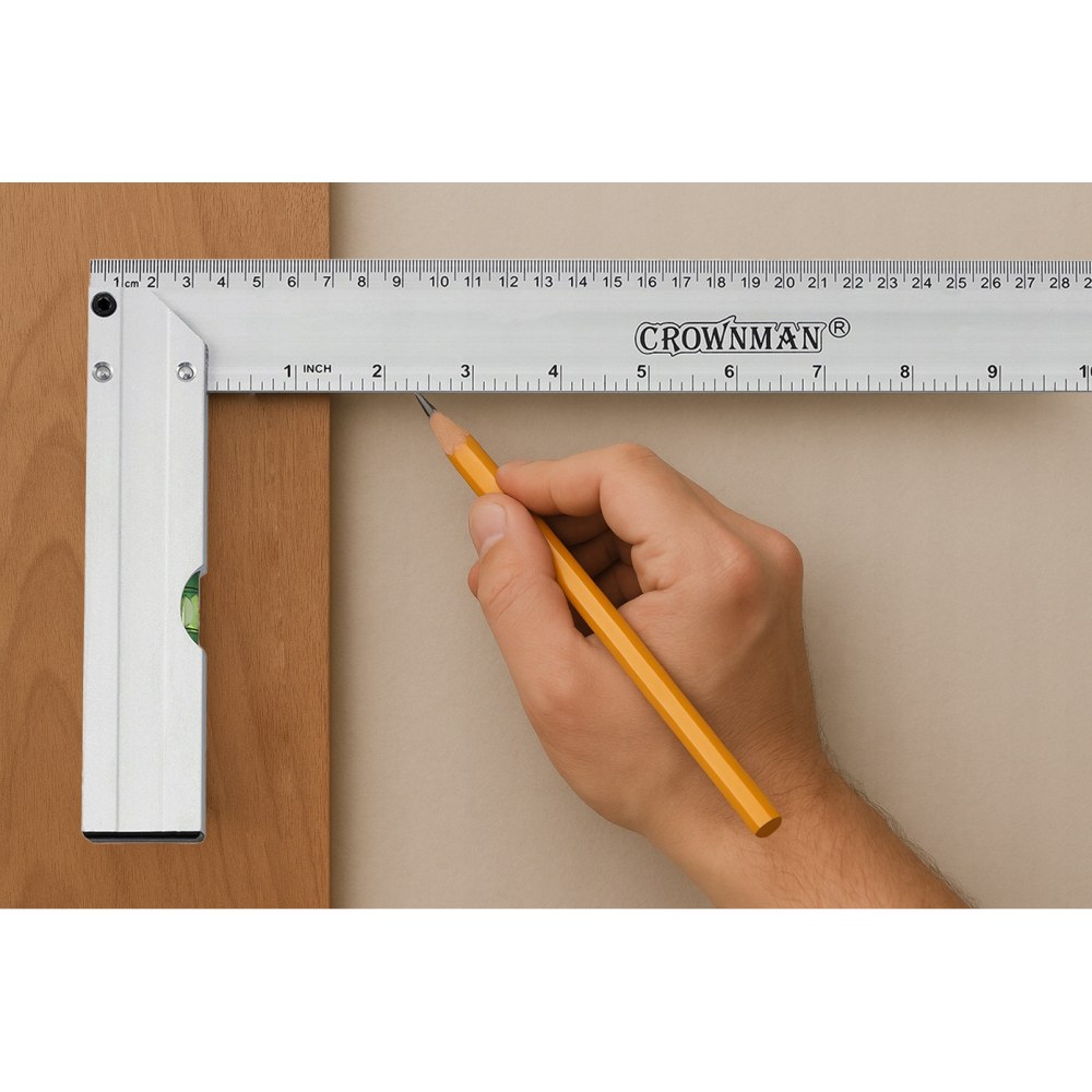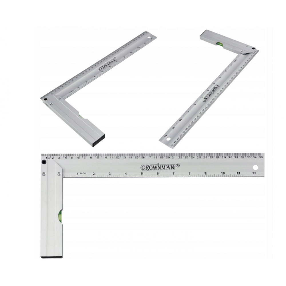 CROWNMAN Hliníkový truhlářský úhelník s vodováhou 350 mm