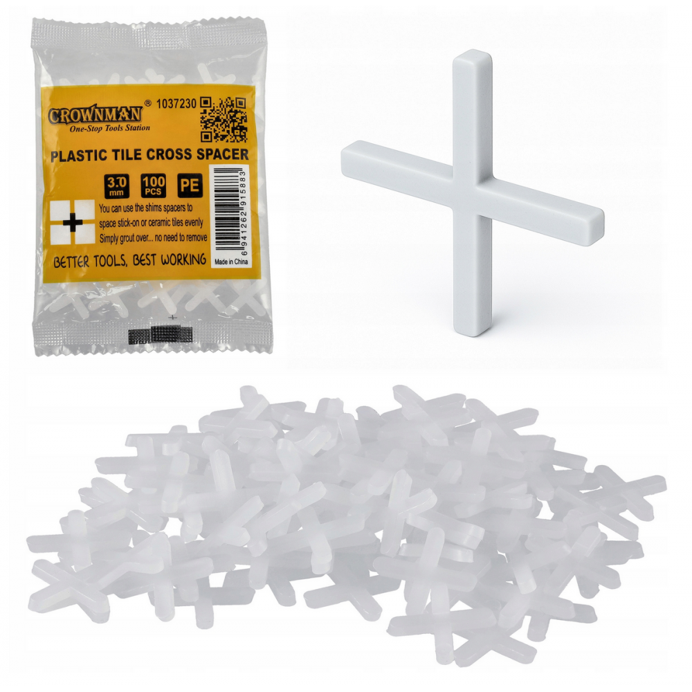 CROWNMAN Plastový kříž na dlaždice 3,0 mm - 100 ks