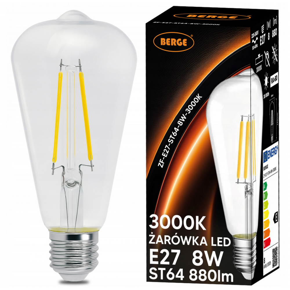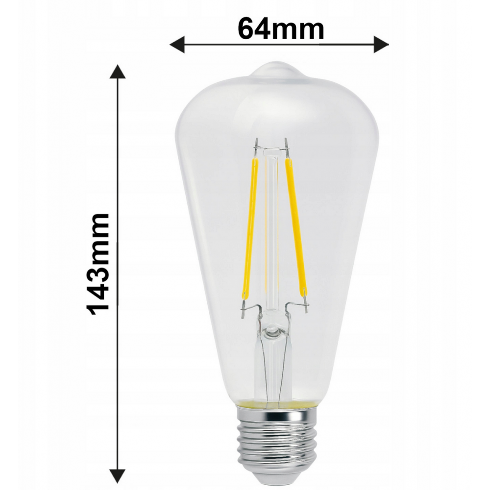 BERGE LED žárovka s vkláknem E27 - ST64 - 6W - teplá bílá