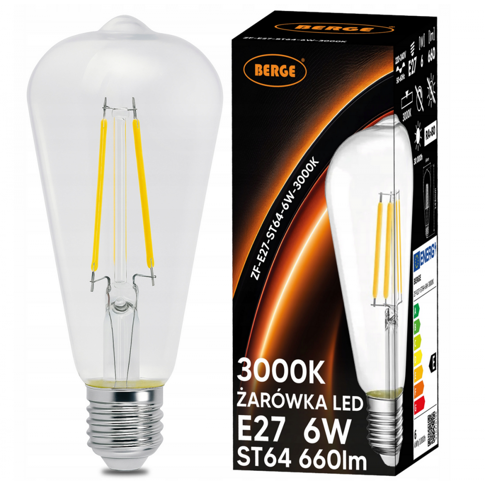 BERGE LED žárovka s vláknem E27 - ST64 - 8W - teplá bílá