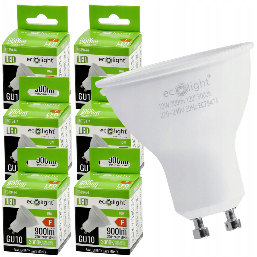ECOLIGHT 6x LED žárovka - GU10 - 10W - 900lm - 3000k - teplá barva