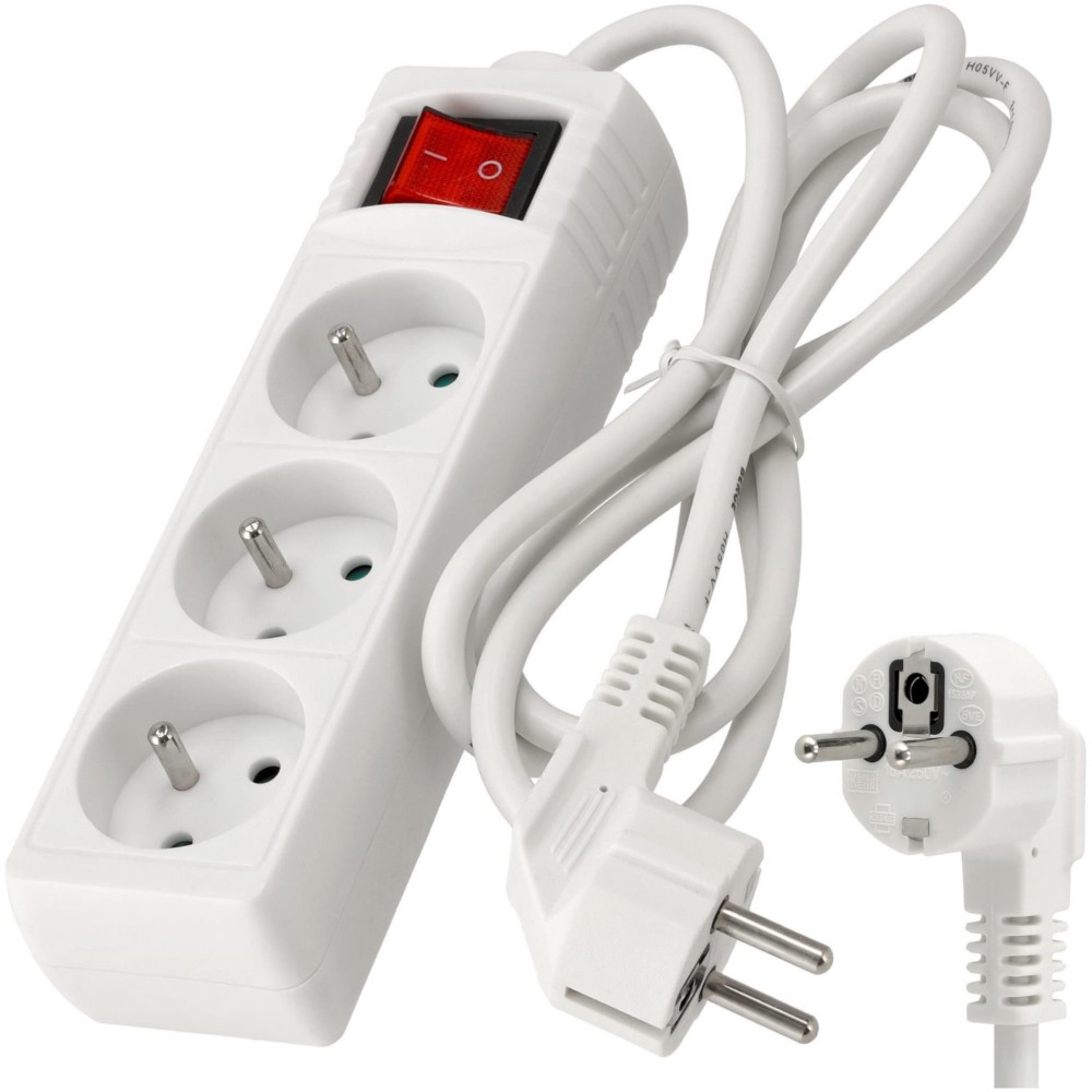 BERGE Prodlužovací kabel 1,5 m - 3 zásuvky - bílý s vypínačem