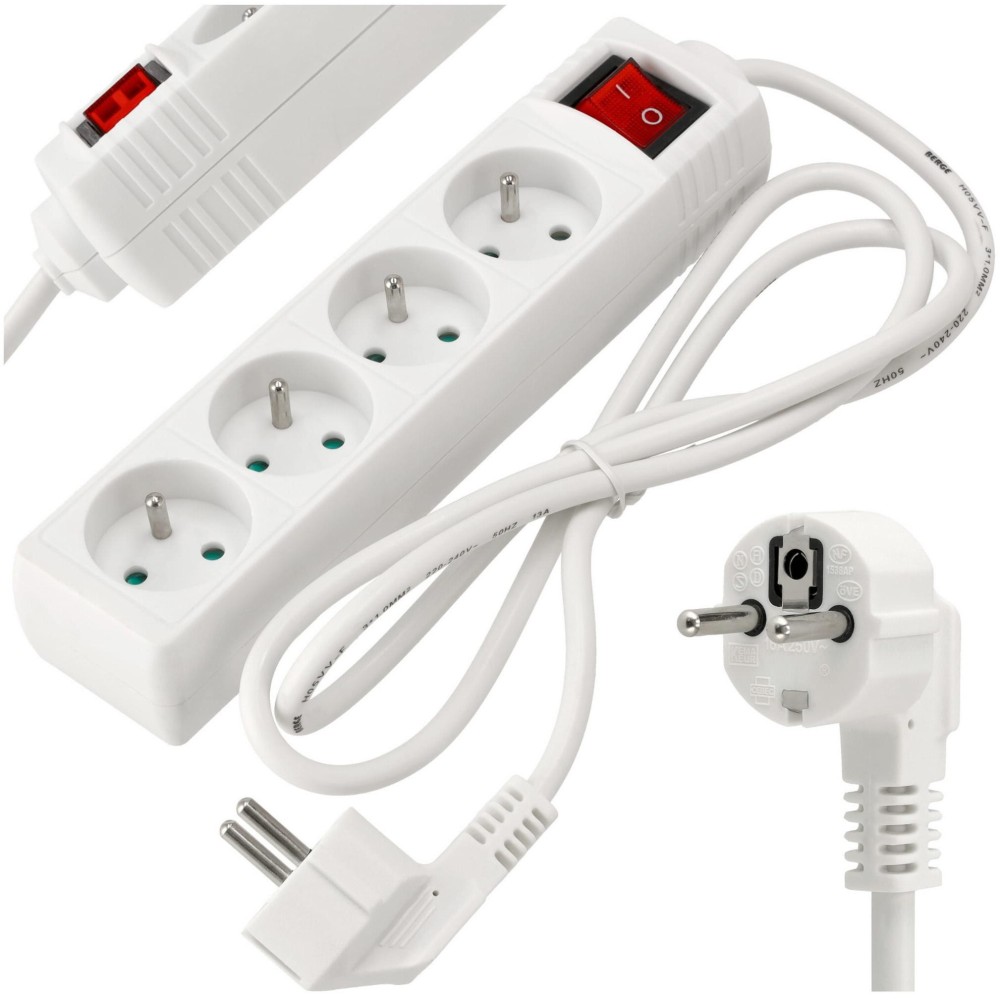 BERGE Prodlužovací kabel 1,5m - 4 zásuvky - bílý s vypínačem