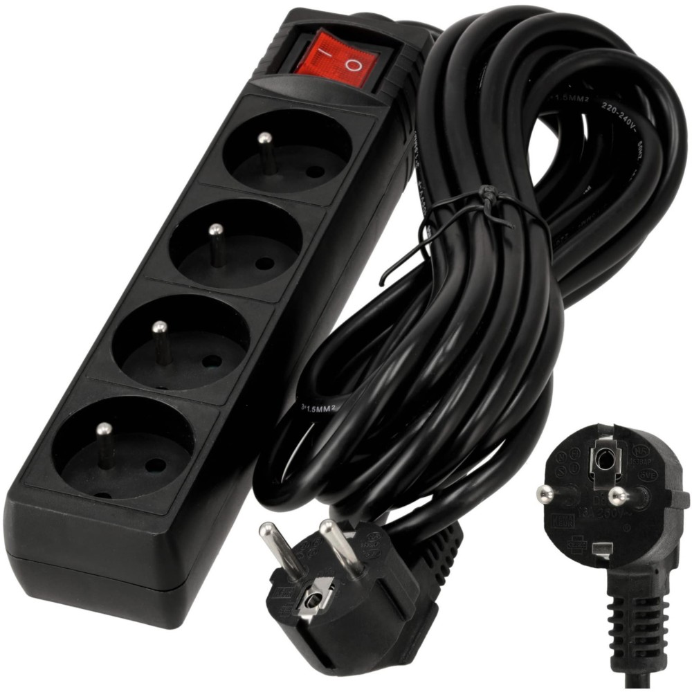 BERGE Prodlužovací kabel černý 5m - 4 zásuvky s vypínačem