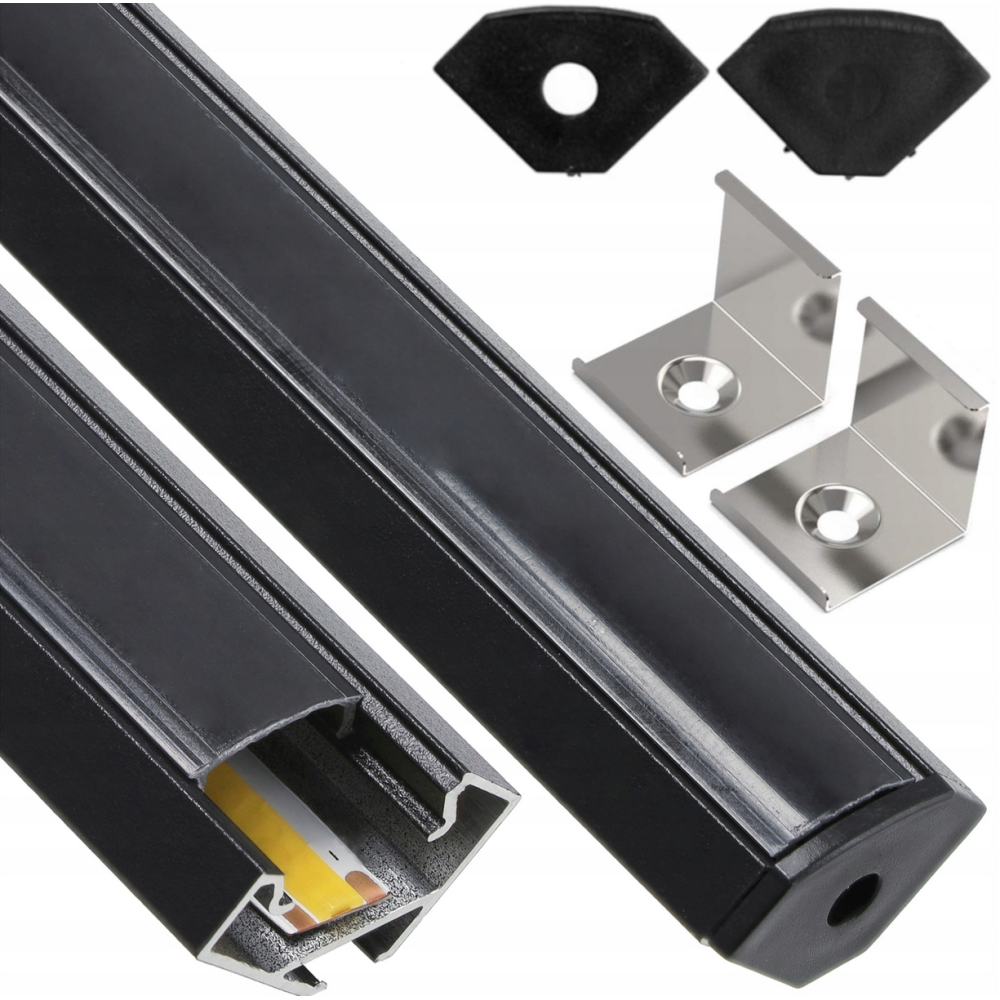 BERGE LED hliníkový profil rohový 2m černý - sada