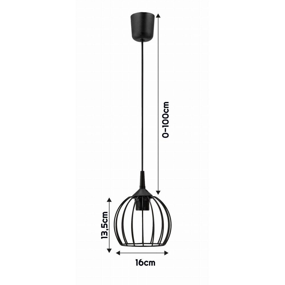 BERGE Drátěná kulatá závěsná lampa - černá
