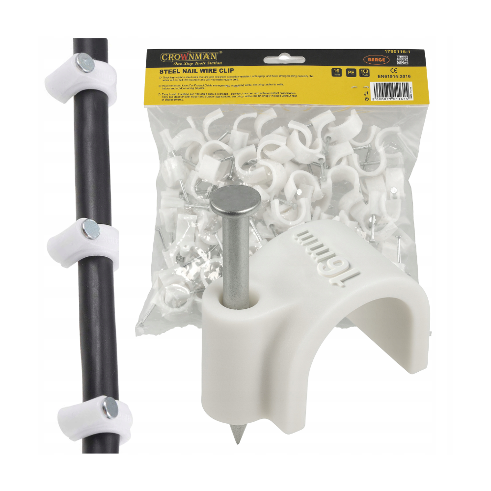 CROWNMAN Držáky kabelů pro kabelové girlandy s hřebíky 16 mm 100 kusů bílé
