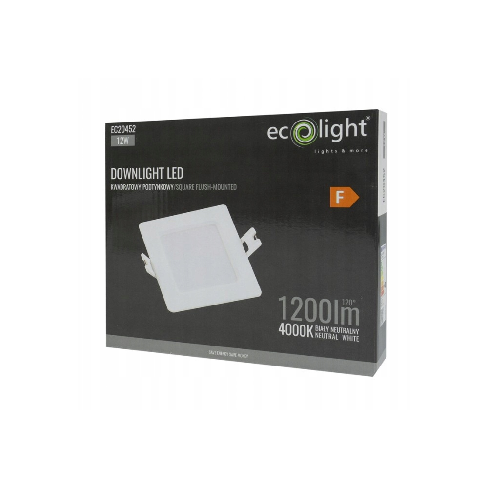 ECOLIGHT LED stropní svítidlo zapuštěné 12W 1200lm 4000K čtvercové